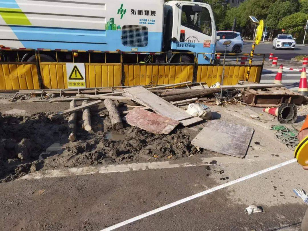 近日,宝山区庙行镇综合行政执法队巡查至康宁路,发现该处有施工队正在挖掘道路。