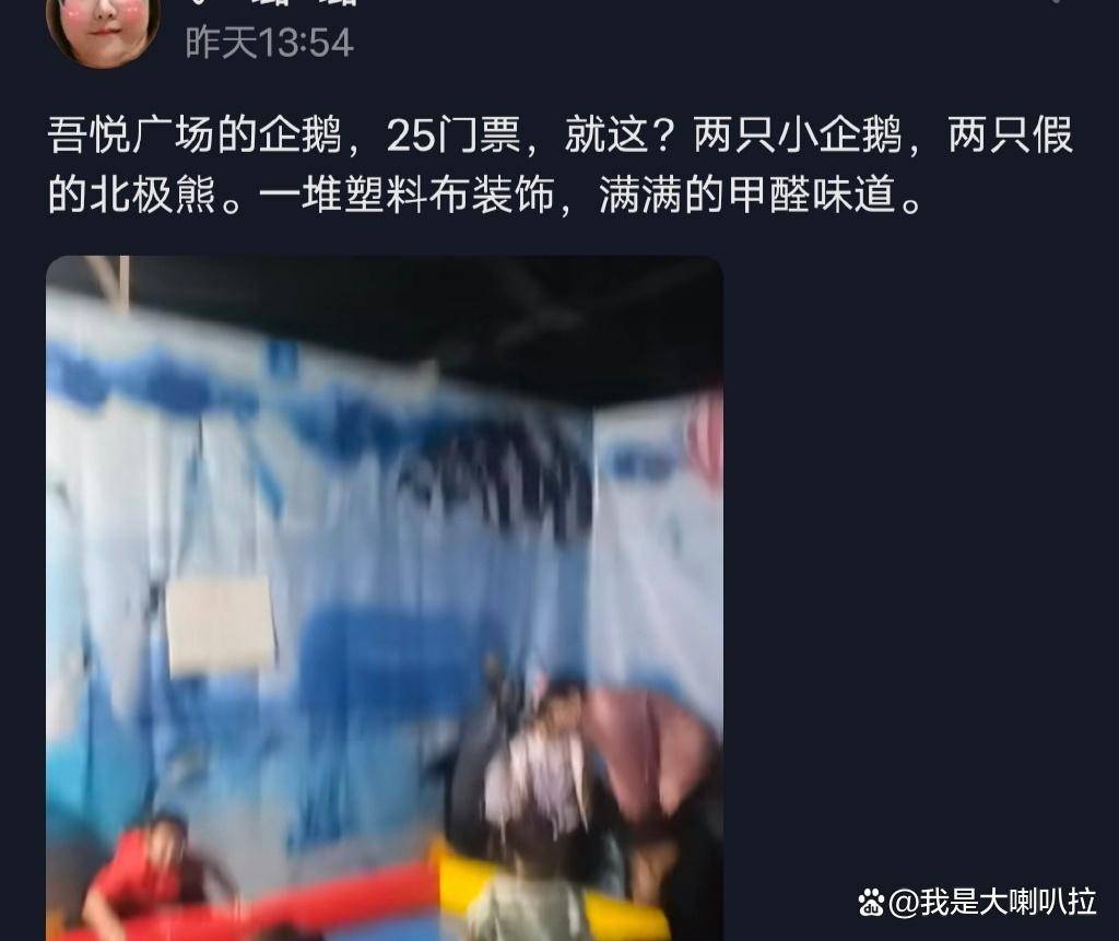近日,不少市民被大同吾悦广场推文刷屏,号称南极企鹅馆开业,轰动全城,大家都满怀期待的去看企鹅,结果都是企鹅模型,只有两个小企鹅。大同吾悦广场涉嫌夸大宣传虚假宣传,被骗的网友可以向有关部门投诉。#大同爆料#