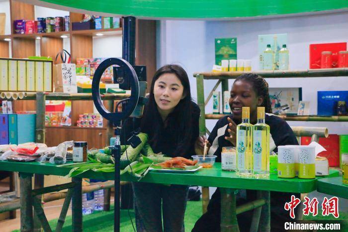 参展商在展出的同时通过直播推介展品。张孝鹏 摄