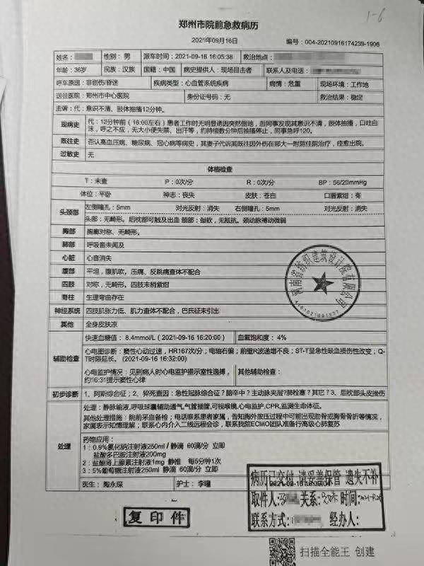 院前急救病历显示,当时,龚明心跳呼吸皆无,瞳孔对光反射消失。