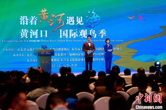 中新网东营11月12日电 (记者 梁犇)“沿着黄河遇见海”黄河口国际观鸟季开幕式12日在山东东营举行。联合国组织、国内外观鸟组织、候鸟迁飞路线涉及国家及鸟类摄影爱好者代表等300余人相聚黄河口,共商合作、共绘愿景,共同见证具有东营特色的生态文化,探索生态与文旅融合发展有效路径。