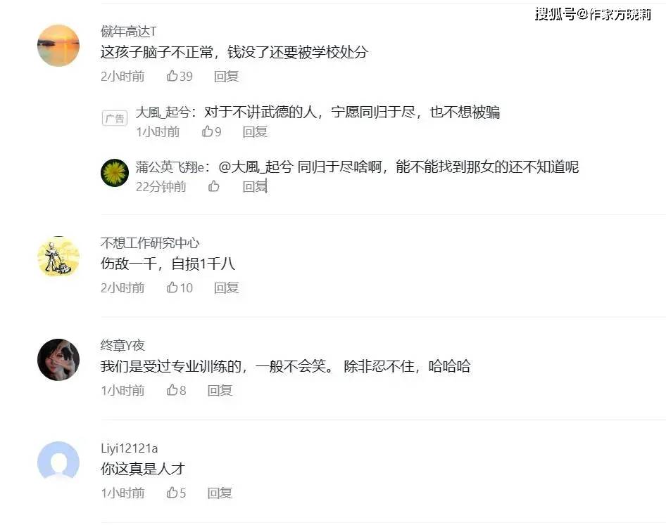 评论区顿时议论纷纷,认为这小伙子不按照常理出牌,这样一来,是不是自己付出的代价更大了?甚至有的人担心这孩子将来考公怎么办了,会不会留案底之类的。