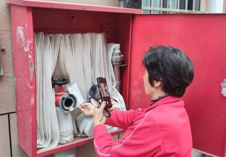 物业工作人员对小区道路、楼栋内的灭火器、消防栓、疏散指示标志等消防设施、器材是否完好有效,压力表指针是否在绿色区域内,是否占用、堵塞、封闭疏散通道、安全出口等进行检查。