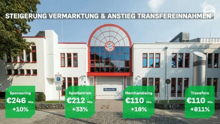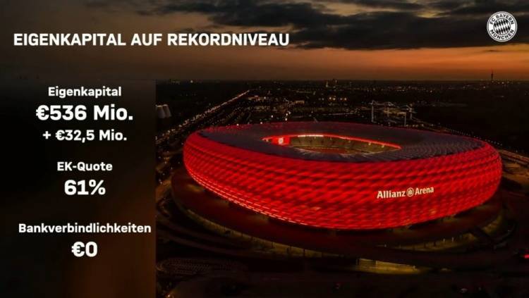 直播吧11月12日讯 在拜仁今天的年度股东大会上,官方宣布俱乐部2022-23赛季财年营收达到创历史新高度的8.82亿欧,利润同比有了大幅增长。税前综合收益从1710万欧增至5450万欧,净利润增长至3570万欧,比上个财年增加2300万欧。