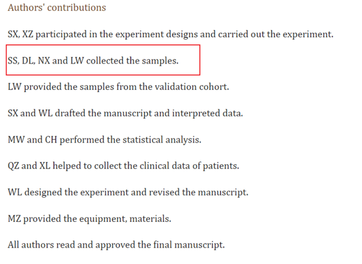 作者贡献为样本收集。