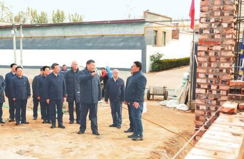 11月10日,中共中央总书记、国家主席、中央军委主席习近平在北京、河北考察灾后恢复重建工作。这是10日下午,习近平在河北保定涿州市刁窝镇万全庄村房屋重建施工现场考察。新华社记者鞠鹏/摄