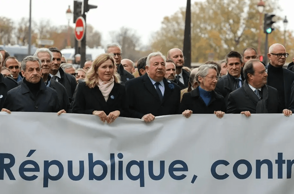 另据美联社报道,法国内政部称,至少有18.2万人响应号召在法国多个城市举行游行。报道说,法国总理博尔内、极右翼政党“国民阵线”领导人勒庞以及总统马克龙所在政党的多名成员当天在巴黎参加了游行。报道还说,马克龙未参加游行,但在《巴黎人报》上发表一封信,表达对抗议活动的支持并呼吁民众起来反对“反犹太主义抬头”。