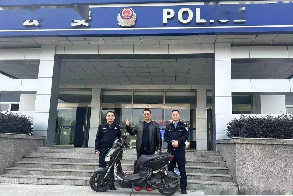 失主姚先生看到失而复得的电动摩托车,开心不已,频频竖起大拇指点赞,对办案民警表示感谢。