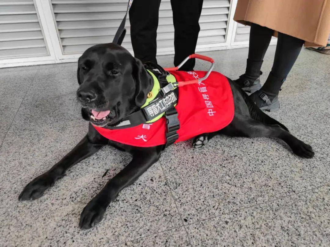 值得注意的是,导盲犬在工作时不能喝水、吃东西,更不能被触摸,其他乘客、路人的逗玩行为很容易让导盲犬分散注意力。