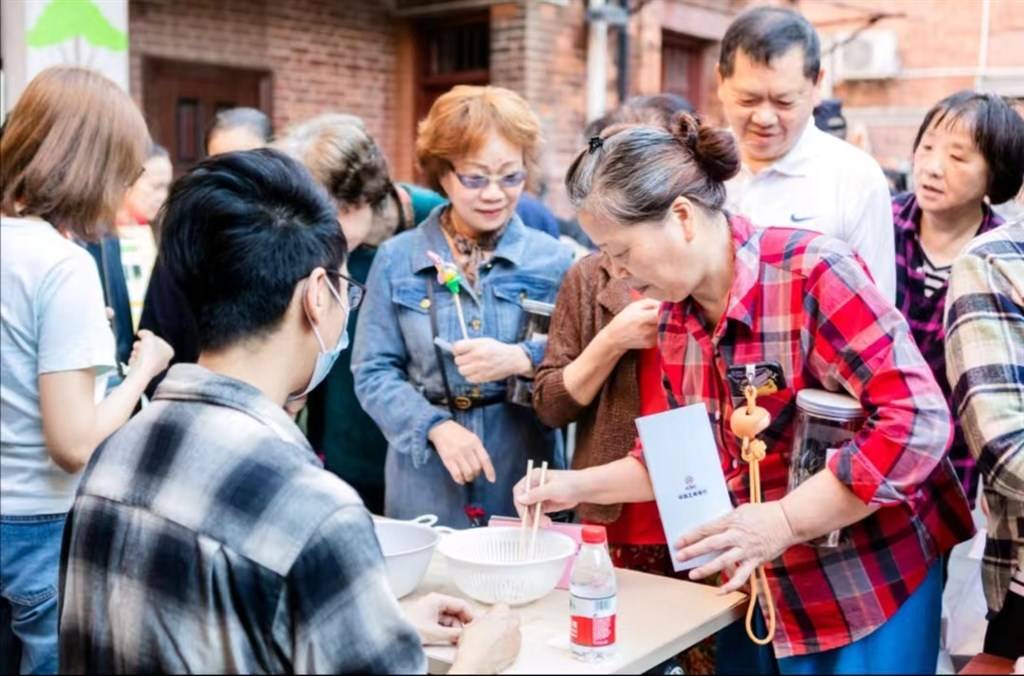 在淡水路沿线的复四居民区丰裕里小区,近日举行了“益满重阳,璀璨丰裕” 商居零距离丰裕里里弄文化节。投壶、夹弹珠、绕口令、非遗捏面人手工艺……居民们重温儿时弄堂里的欢乐氛围,感受着历史沉淀。游戏之余,公益商户“春园·四如春”为社区居民送上了平价点心套餐。在弄堂居民公约建言献策环节,居民们还提出20余条意见建议,为丰裕里的建设出谋划策。