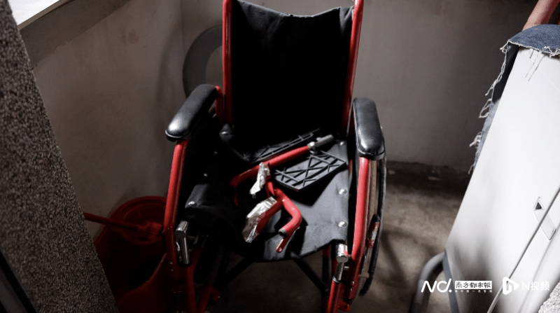 青婶把角落里因损坏而无法折叠的轮椅拖了出来。看着旧轮椅,她脸上露出惋惜的神情,“这轮椅用了二十年了,如果不是零件老化折叠不起来了,其实还蛮好的。”