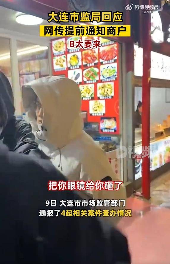 今年国庆假期,大连就发生过商户缺斤短两事件,当时消费者向当地市场监管部门投诉,当地市场管理所所长称已经下班,去不了现场。10月24日,大连市市场监督管理局对涉事餐厅作出处罚,涉事街道市场监督管理所原所长因怠于履行职责、违反工作纪律、破坏营商环境行为,被免去所长职务。而B太到大连,当地商户已经收到了“警示”,对此,大连市市场监督管理局宣传处工作人员表示,网传的截图基本都是市场内部自建的群,都是在B太直播后发生的。还有消息称,疑似因为B太打假引发了个别小吃街拉闸关灯。