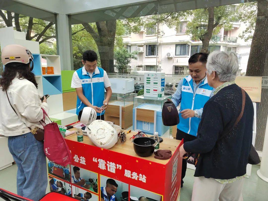 近日,万里公园里的比邻党群服务中心里格外热闹。每周一三五日,来自“益”路同行志愿服务队的志愿者们都会驻点服务,为居民维修小家电。