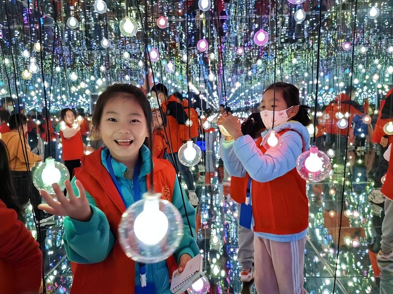 小记者们乘坐校车,一路欢歌笑语来到了春晓研学基地。首先由讲解员带领小记者来到主展区以星空光与影主题艺术馆,此馆设计整体连贯、一步一景,给小记者们带来极强的视觉冲击力体验,为小记者们搬来一整片“璀璨星空”。