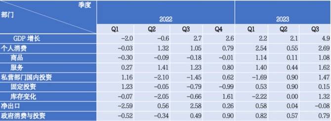 据美国商务部统计,2023年第三季度经济增速超出市场预期,投资者欢呼雀跃,认为经济最有可能实现了软着陆。然而,第三季度的数据隐藏着一些隐患。