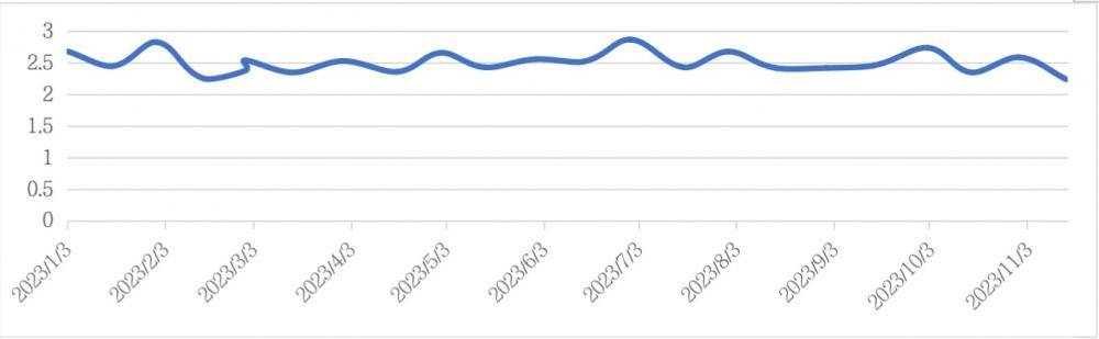 美国债券发行市场较为平稳。截止2023年9月,美国各类债券融资额为62970亿美元,低于2022年同期的72004亿美元,截止10月末,美国公司债券融资12669亿美元,略高于去年同期的12364亿美元。
