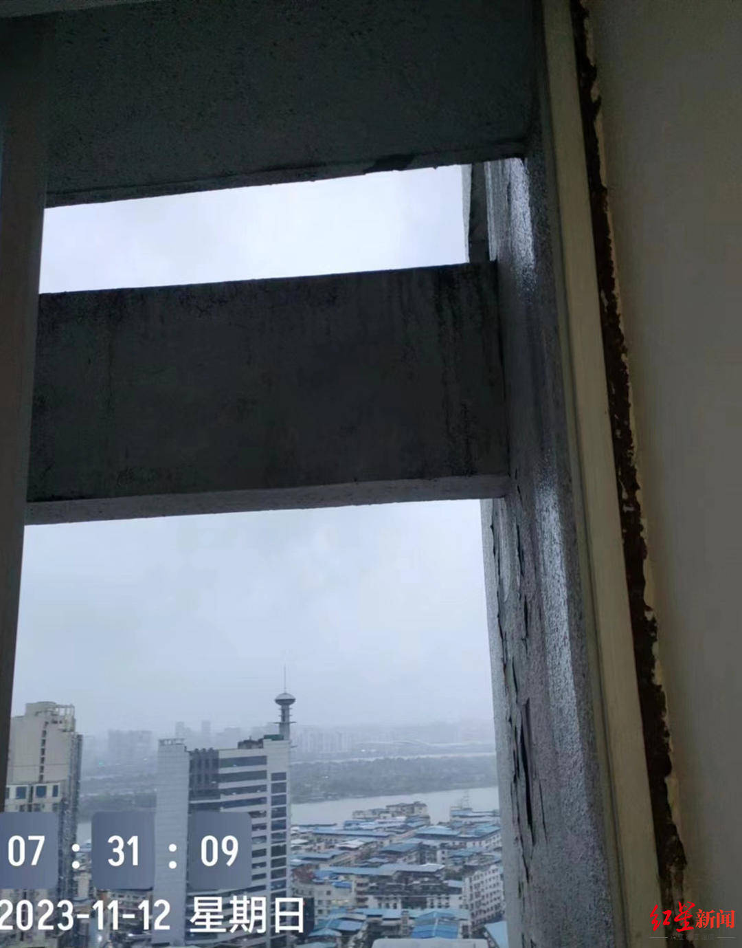 ▲涉事住户家此扇玻璃窗掉落