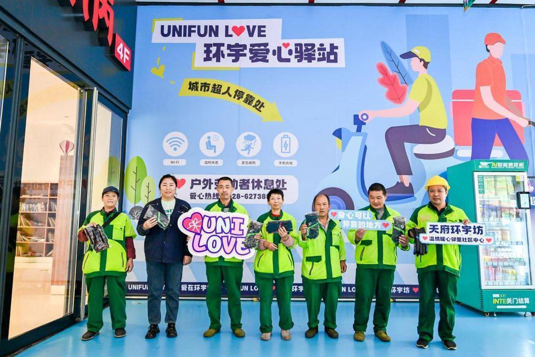 “爱心驿站”亮相当天,天府环宇坊还为外卖小哥、环卫工人等“城市超人”免费发放了加厚手套以及骑行面罩。“太贴心了,‘爱心驿站’对我们来说是个特别温暖的歇脚地,让我们感受到了这个城市的温度。”外卖小哥小赵说。