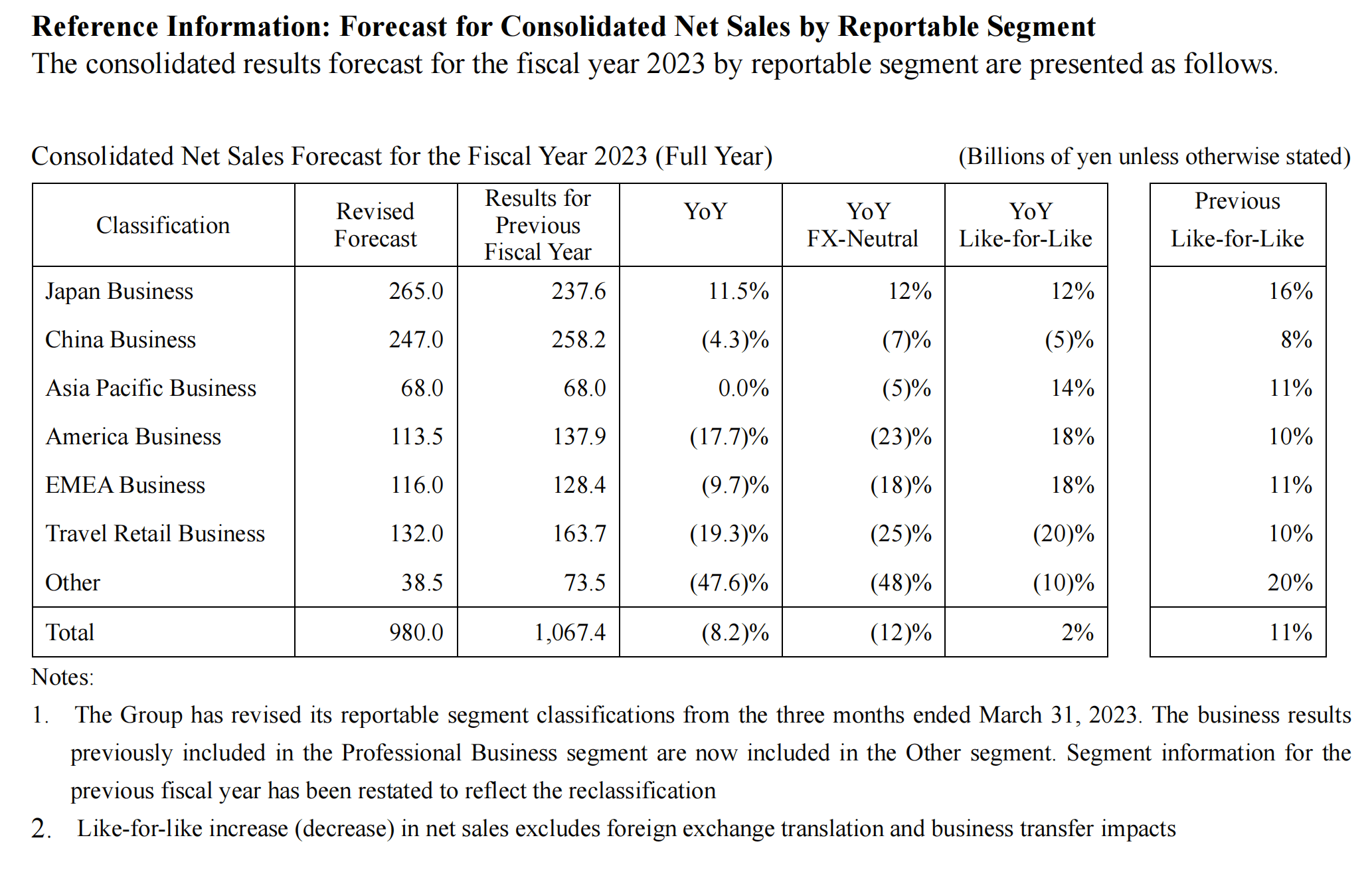 分地区来看,日本经济正继续从疫情中复苏,户外活动也逐步增多,入境旅游消费不断回升,但由于生活成本有所上升,资生堂集团在日本本土市场的消费者仍保持谨慎消费。