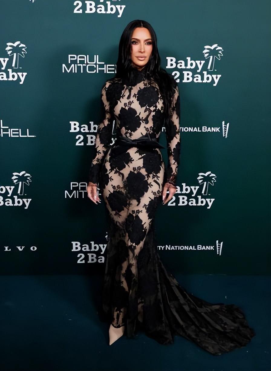 二、金卡戴珊穿蕾丝裙很妩媚,都不如瓦妮莎瘦了
