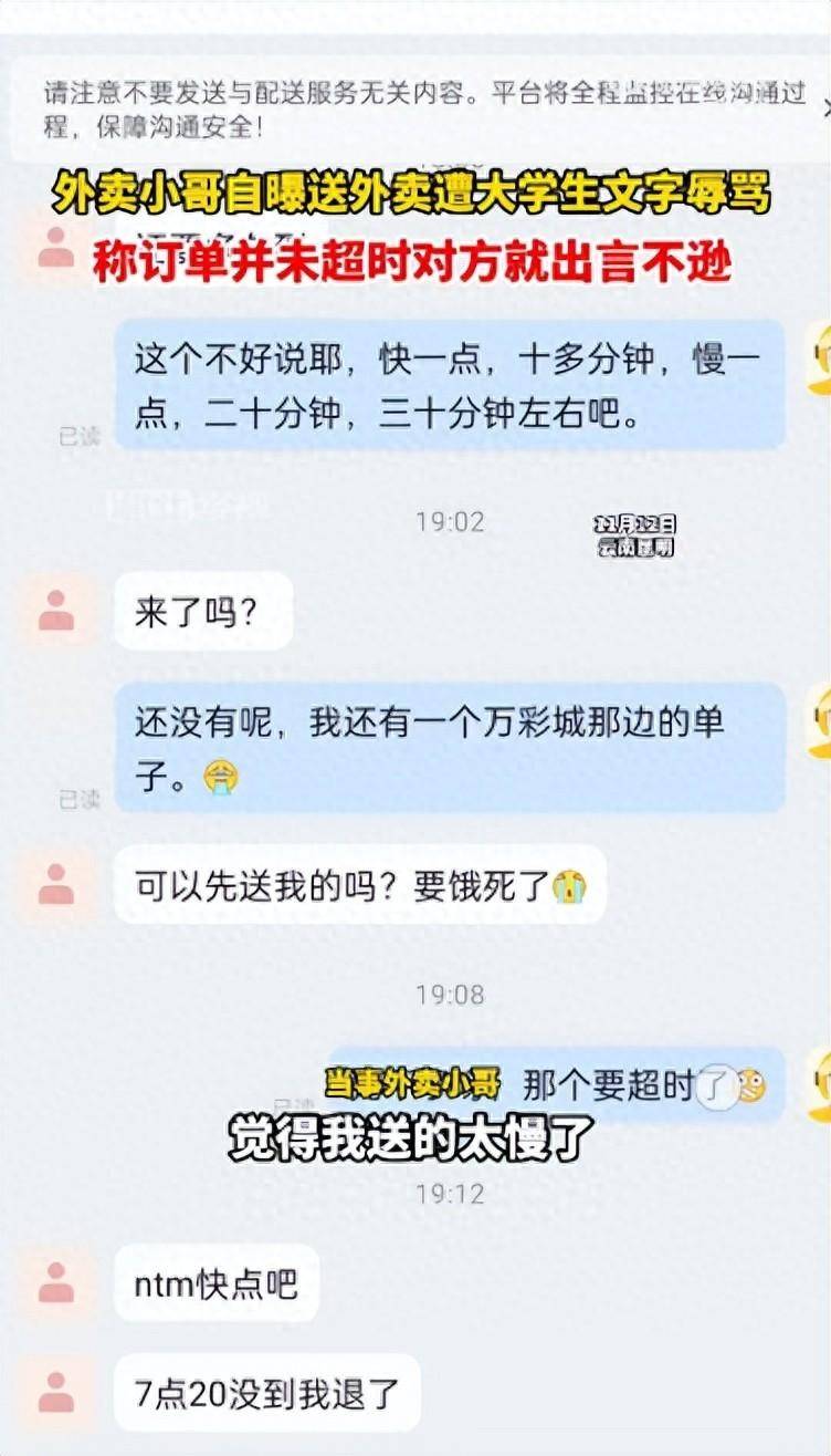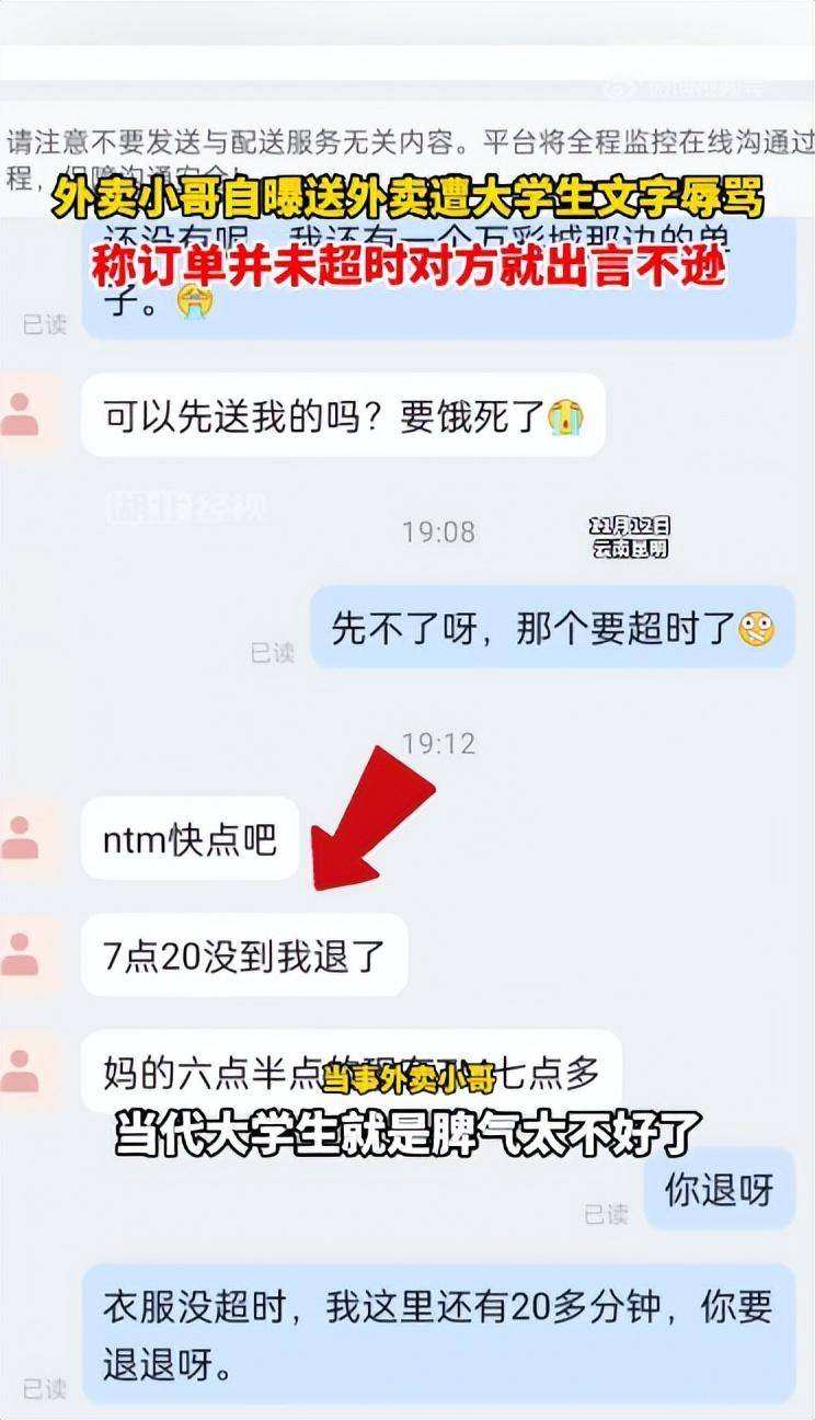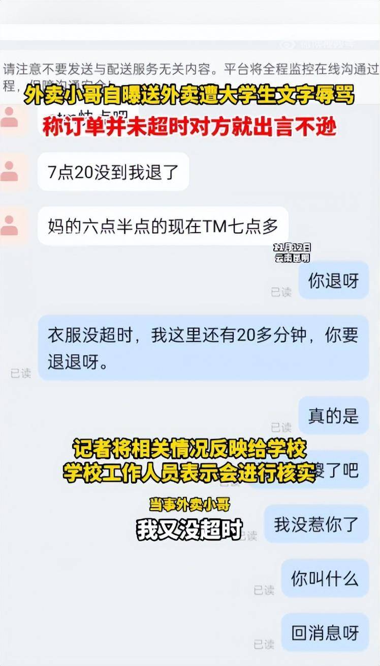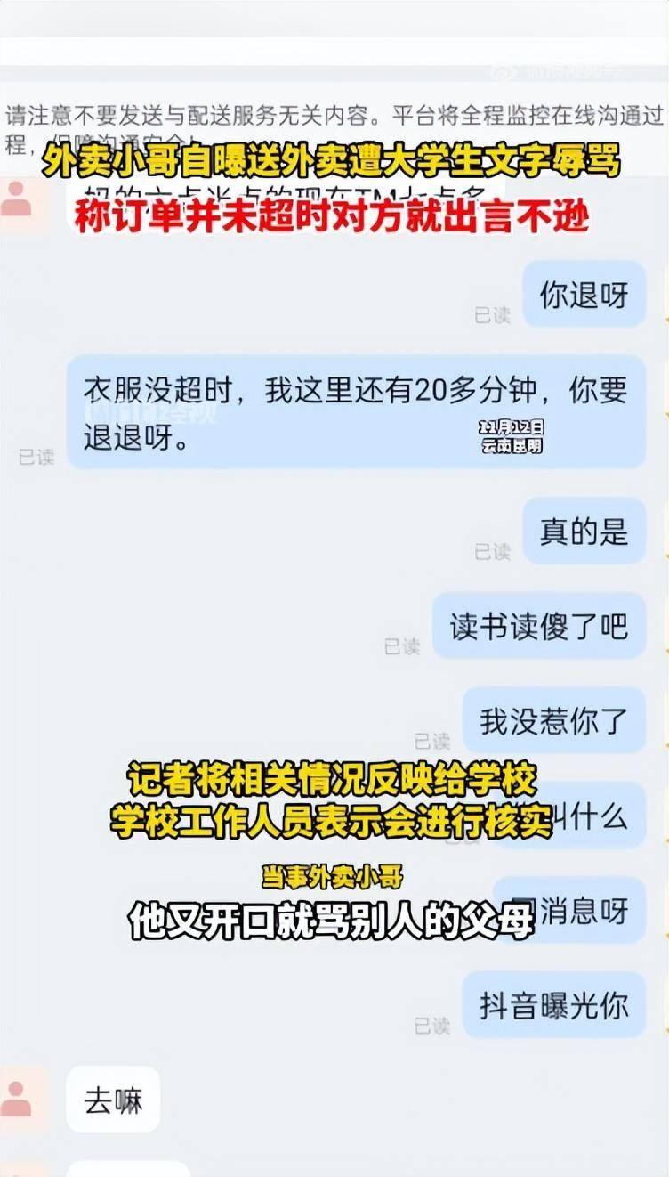 原标题:外卖小哥自曝送餐未超时却被大学生催单辱骂,当事人:张口就骂父母,当代大学生脾气不好;校方:会核实调查