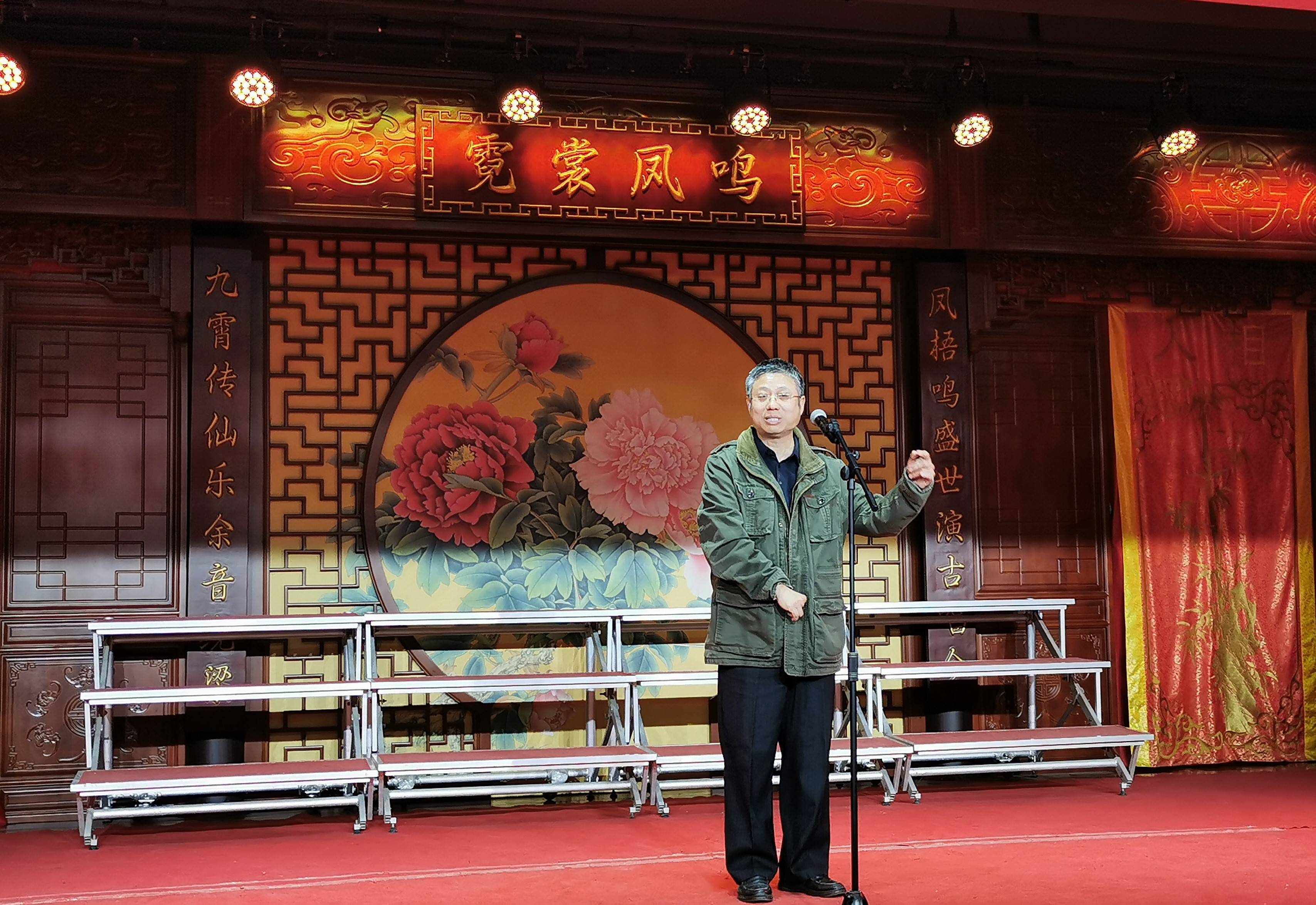 活动由学会会员黄艳和宿迁市戏剧家协会理事彭友主持。介绍过参会嘉宾之后,宿迁主办方代表致欢迎辞,向前来参加本次活动的各位嘉宾表示诚挚的问候。《红楼梦》是四大名著之首,是世界文学宝库中的瑰宝,是中国文化的名片。宿迁与《红楼梦》及作者曹雪芹有着深厚的历史渊源。宿迁站《红楼梦》普及推广公益活动举办场地,新盛街文旅景区福星剧场,其所处位置距京杭大运河很近,宿迁大运河在全省乃至整个大运河沿线所处的地位、扮演的角色是治河咽喉、漕运转轴。“生活在大运河,写在《红楼梦》”,是对曹雪芹一生最精准的描绘。