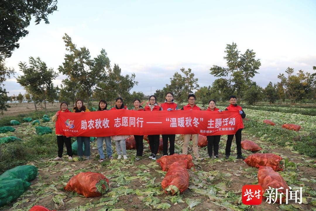 11月10日,盐城市亭湖区盐东镇新时代文明实践所开展了“助农秋收,志愿同行”——“温暖秋冬”实践活动。活动中,该镇组织志愿者深入田间地头,助农秋收。