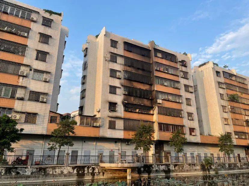 10日下午3时许,广州日报·新花城记者在现场了解到,事发地位于村民公寓3楼,现场明火已扑灭,公寓外墙被熏黑,楼下仍围有警戒线。