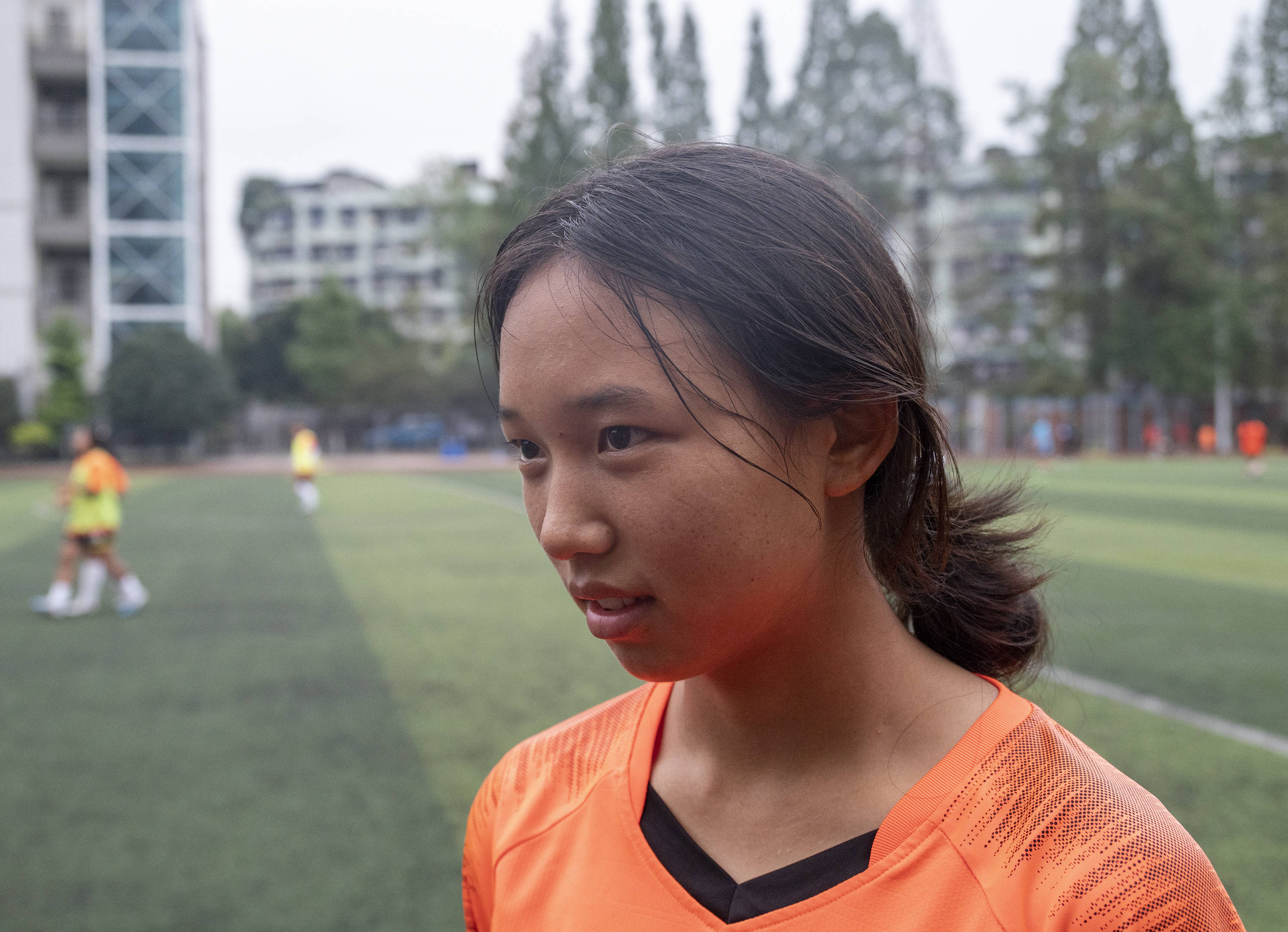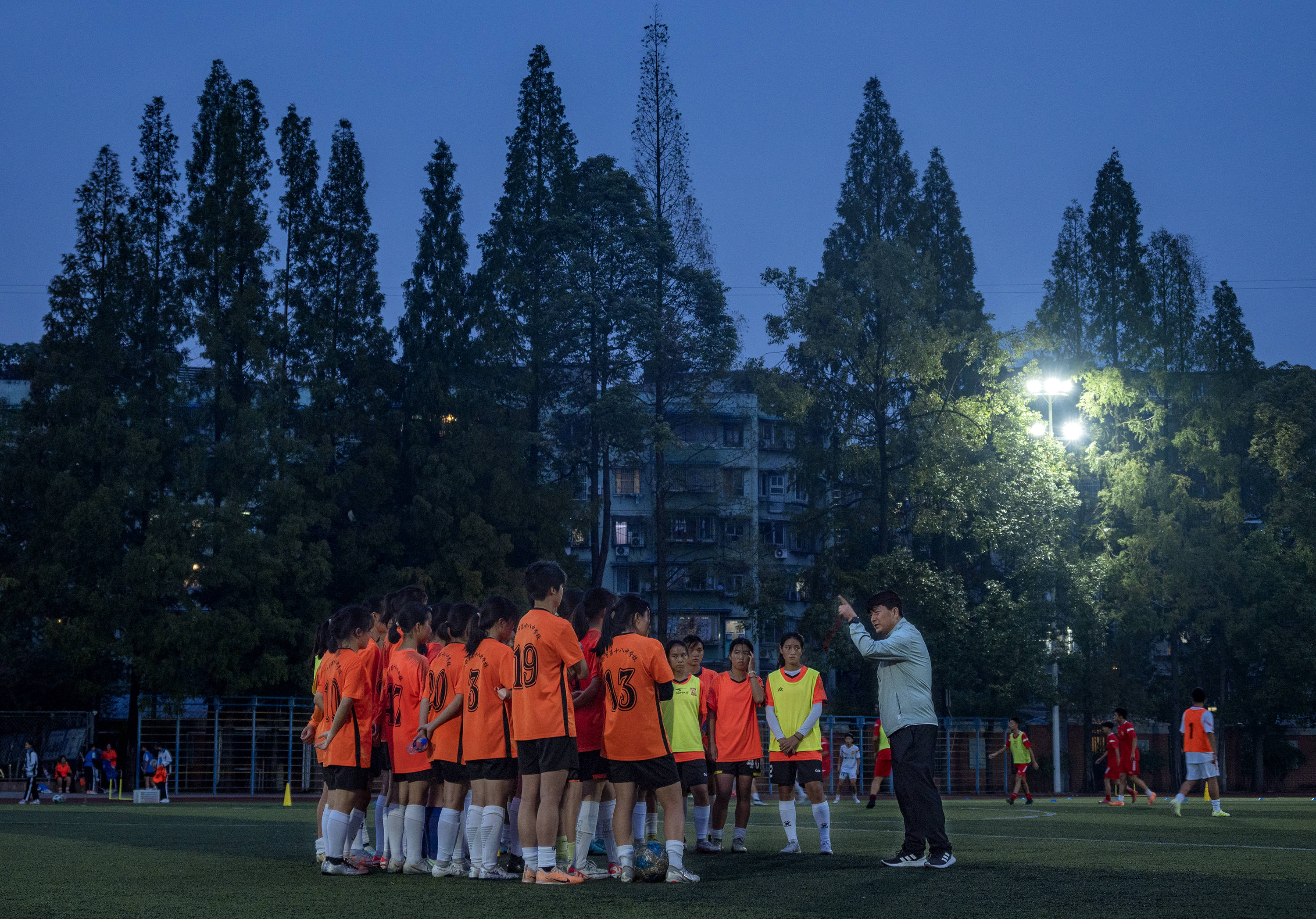 精疲力竭后,有人想过放弃,但挣扎一会儿又站起来继续练。女孩们知道教练是“最该感谢的人”,但他永远那么严厉,随便几句话就让人头皮发紧。他总是以不容置疑的语气强调着,“跑起来,加把劲!踢球,是为了你们的前程。”
