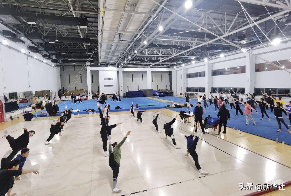 ↑2023年1月28日,华东师范大学健美操队在训练。