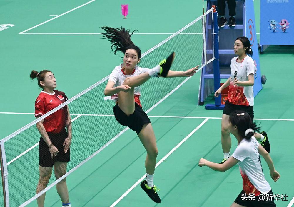 ↑长沙市南雅中学选手肖琢玮在2019年第二届青运会上比赛。2020年,她以超湖南省文科一本分数线31分、羽毛球高水平运动员专业测试排名第二的成绩被北京大学录取。