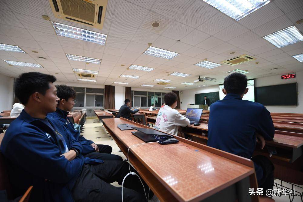 ↑2023年10月30日,北京理工大学男足4名大一队员在训练后上课。新华社记者 侯昭康 摄