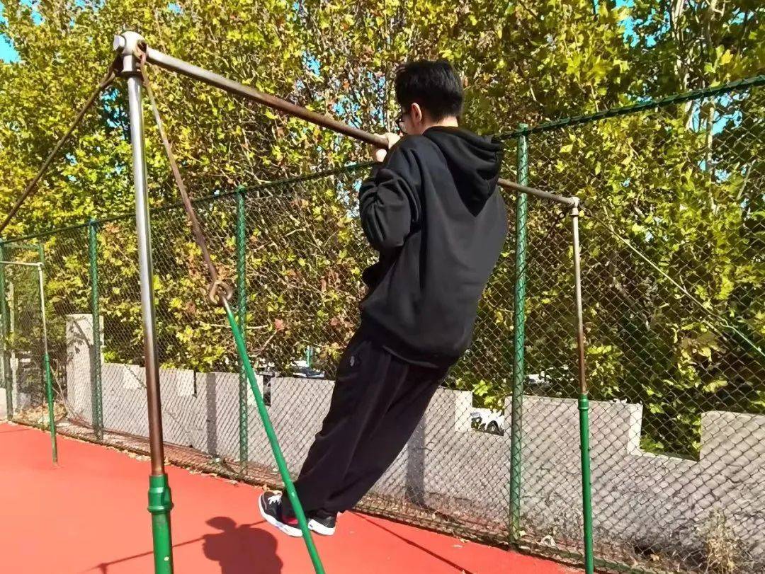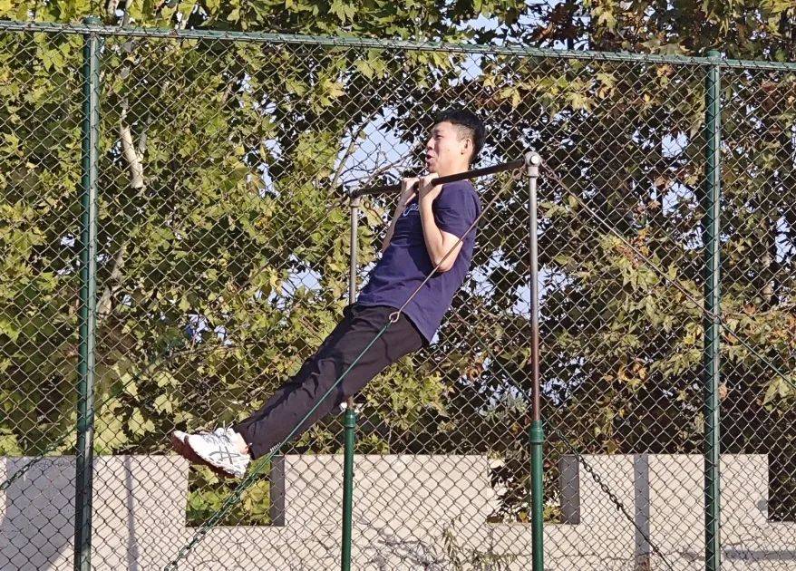 学子们紧紧抓住单杠