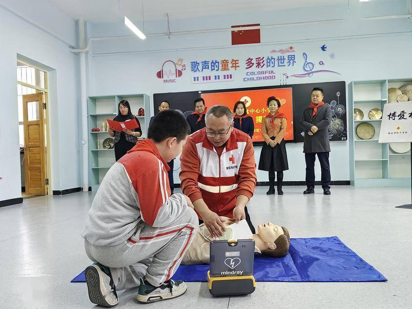 揭牌仪式上,中国红十字会总会“会员之星”、博乐市红十字志愿者朱红博为在场的师生讲解并演示了心肺复苏术以及AED除颤仪的使用方式。此外,在场的领导为20名学生代表发放了慰问品。