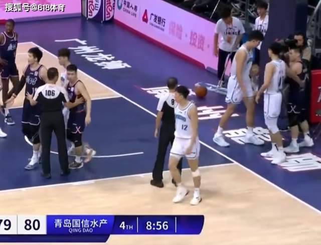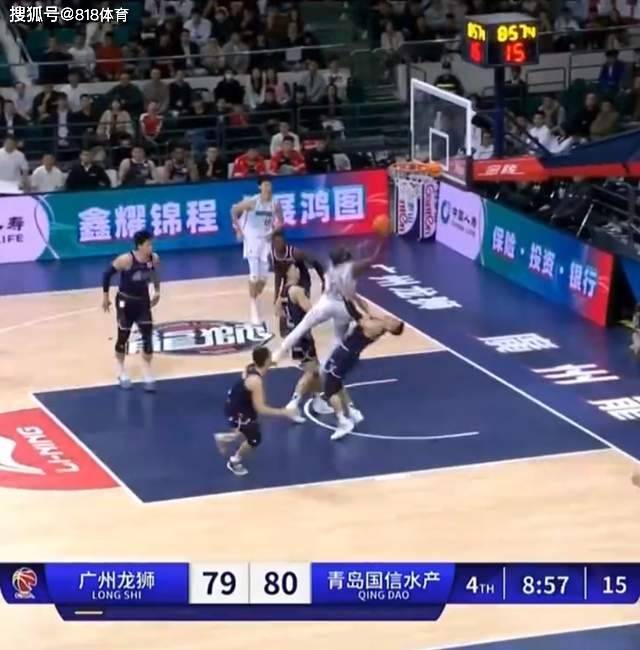 比赛打到第四节还剩不到9分钟,青岛80-79领先,青岛外援鲍威尔迎着陈盈骏的防守上篮得分。