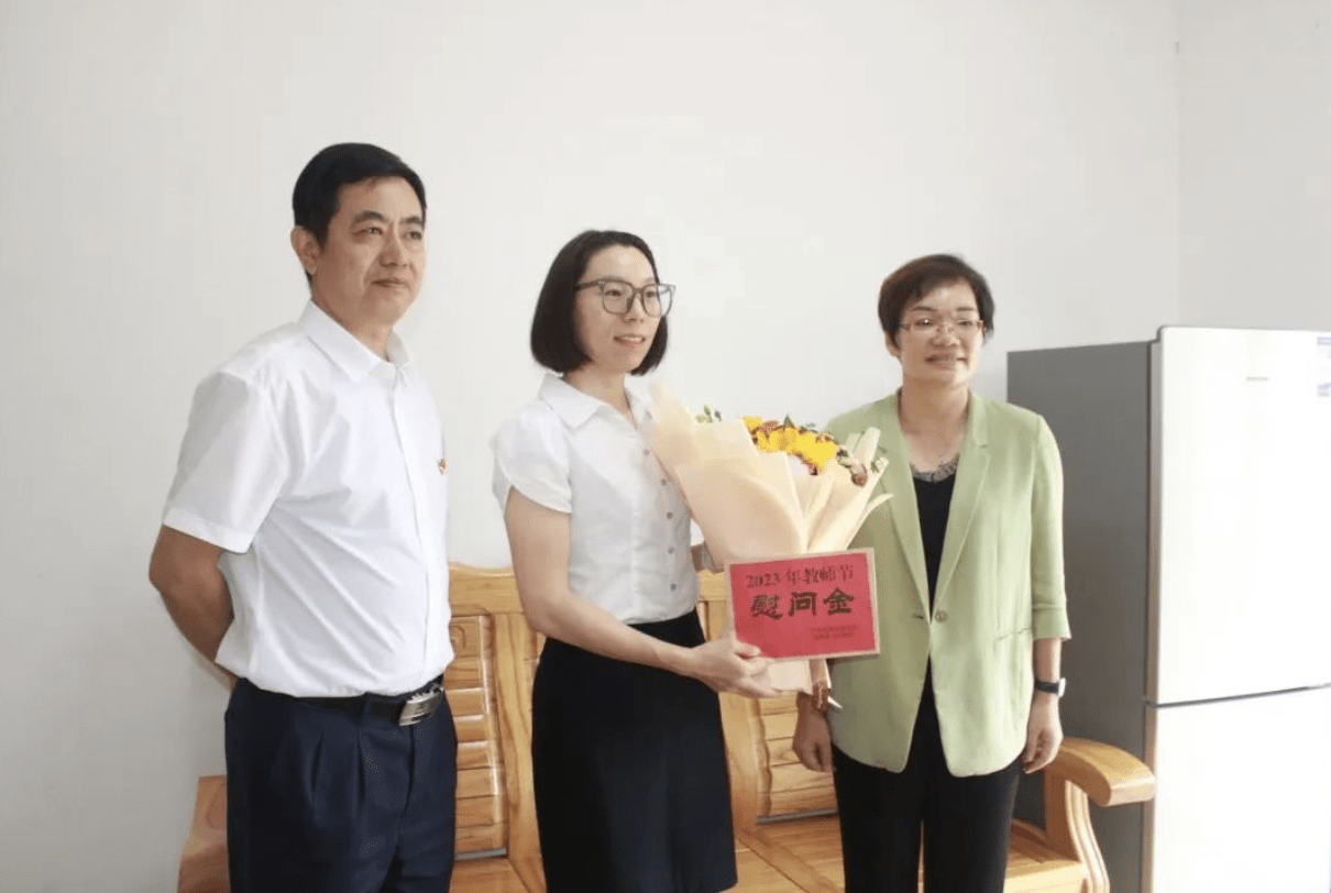 今年教师节前夕,靖西市委副书记黄兰爱慰问在当地支教的谢爱兵校长、周荣华老师