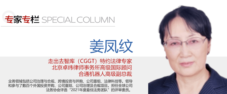 走出去智库(CGGT)特约法律专家、卓纬律所高级国际顾问姜凤纹认为,本次《公司法》修订草案三审稿是在《公司法》一审稿和二审稿的修改基础上,又做出的一次全面且深刻的修订,这对于完善和建立符合中国国情的现代公司法律制度、加强公司治理与合规都具有重大的现实意义和深远的历史意义。