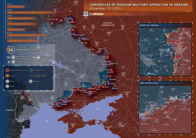 根据美国战争研究所的每日战报显示,仅仅在11月12日一天,俄军就对第聂伯河右岸的乌军阵地进行了5次空袭,使用了31枚滑翔制导弹药;此外还发动了55轮炮击密集覆盖乌军登陆部队的集结点。如果说俄军对于第聂伯河右岸的乌军是进行“点穴”,那么对于渡河的乌军则是直接进行大面积火力覆盖。