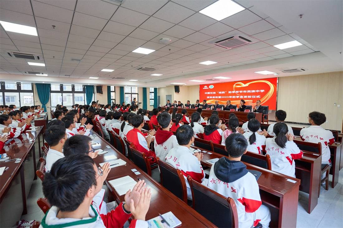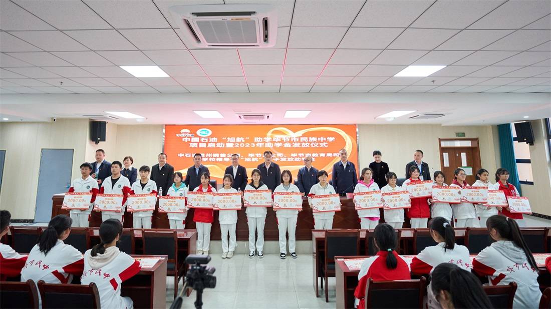 据了解,“旭航”助学项目花落毕节市民族中学,是毕节市委、市政府,市教育局、市电视台、中国石油贵州销售公司对毕节民中家庭经济困难学生关心关爱的结果。旨在为家庭经济困难的高中学生提供助学金和奖学金,帮助他们完成学业,实现求学梦想。