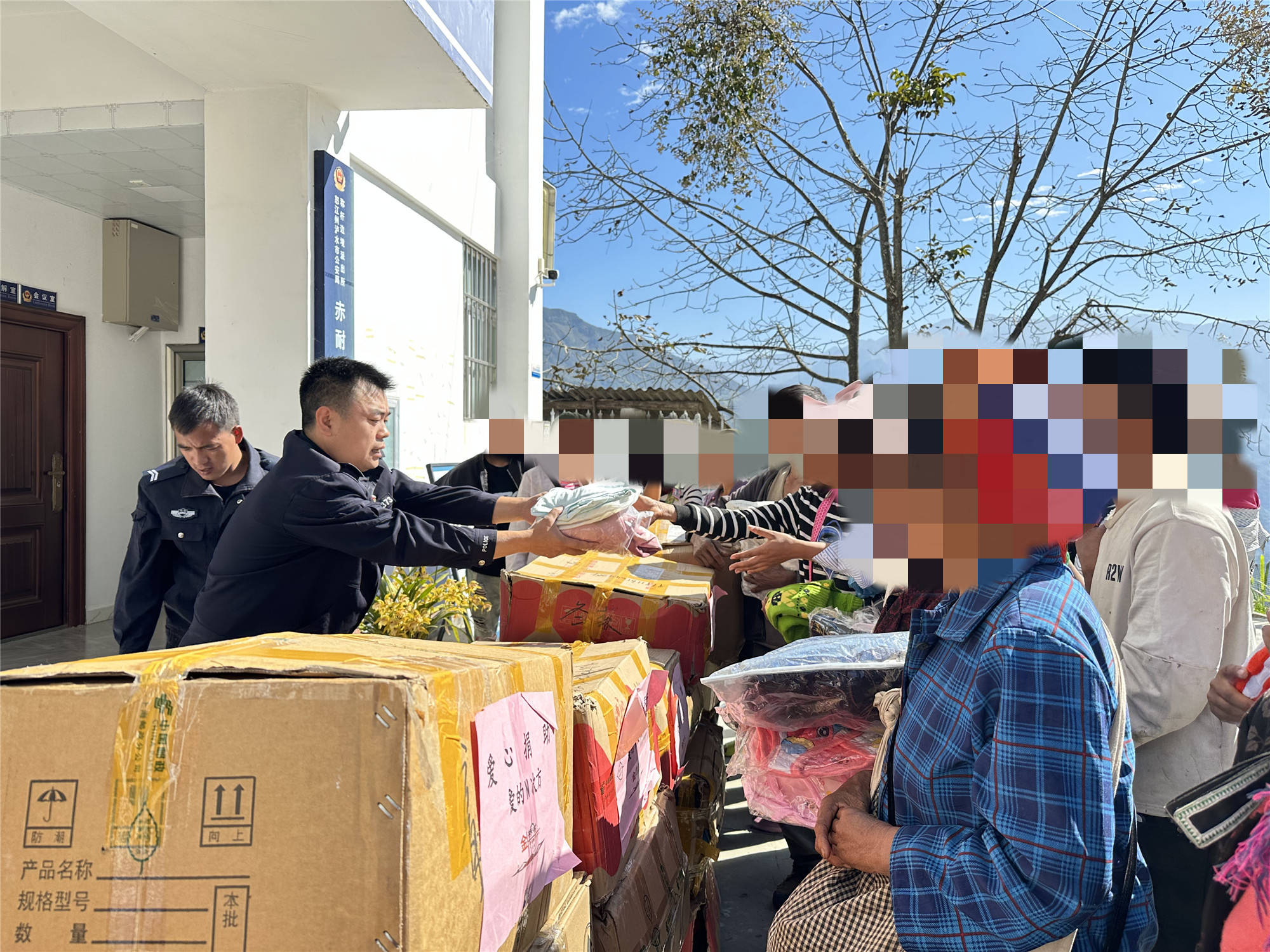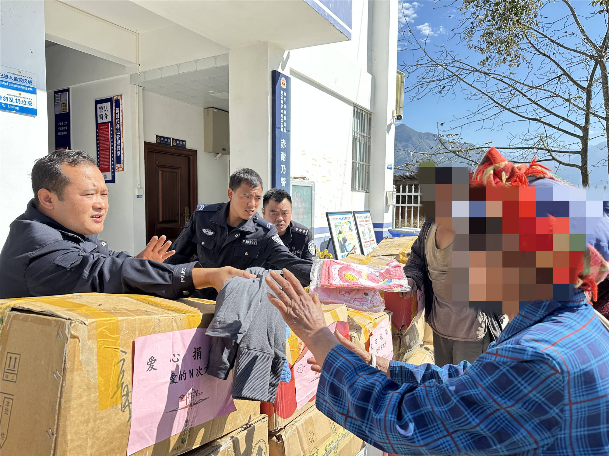 了解此情况后,为了有效鼓励这些特殊家庭能够战胜困难,称杆边境派出所民警辅警主动与社会各界爱心人士联系,积极开展爱心募捐活动,经过一个多月的汇总收集,共筹到各界爱心人士捐赠的衣服3000余件,书包、水杯等各类物资300余个。