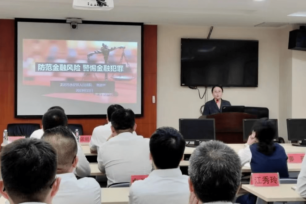 为进一步助力金融机构防范、化解金融风险,近日,龙岩市永定区人民法院立案庭负责人张丽华走进福建永定瑞狮村镇银行,以“防范金融风险,警惕金融犯罪”为主题开展法治讲座活动。