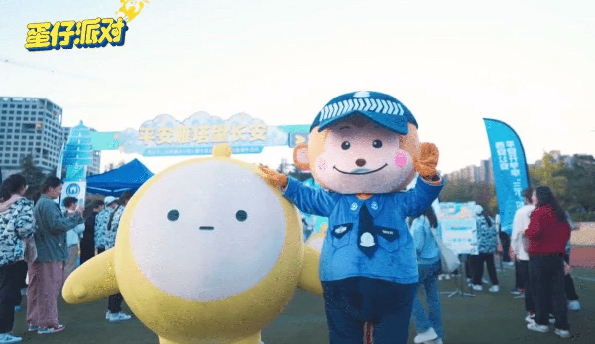《蛋仔派对》还将这种IP化、品牌化的实践,充分延伸到了线下生态中。2023年九月底至十月底,《蛋仔派对》与西安市公安局合作,走进西北政法大学,为大学生群体开展了安全公益宣讲。通过打造趣味主题摊位和蛋仔IP化的实景闯关游戏,帮助大学生们掌握反诈技巧,并参与到反诈公共事业中来,共同构建全民防诈新格局。良好的活动效果也促进双方再次联手,《蛋仔派对》紧接着又前往西安欧亚学院举办了第二期“平安开学季 ‘三下’校园行”活动,将宣传内容从反诈向整个网络安全主题铺开,为高校学子普及网络安全知识。