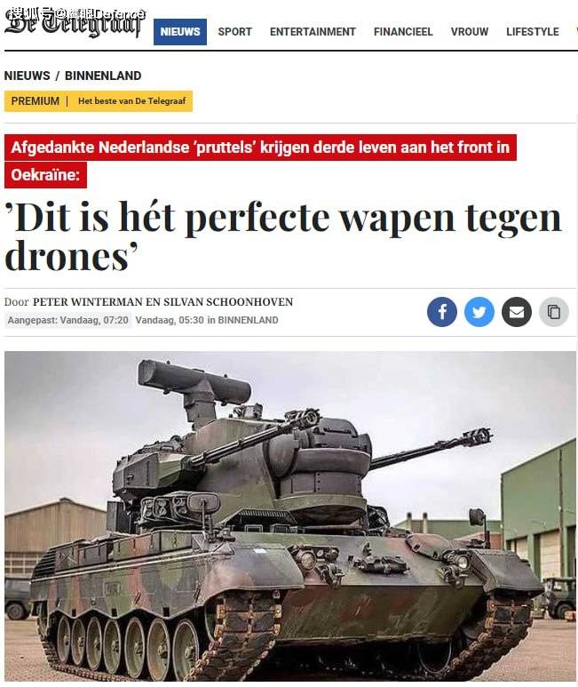 De Telegraaf援引消息人士的话称,美国政府已经从约旦购买了60辆“猎豹”自行高炮,即将送到乌克兰,这些“猎豹”价值1.1亿欧元,荷兰在2016年以2200万欧元的价格将其出售给了约旦。