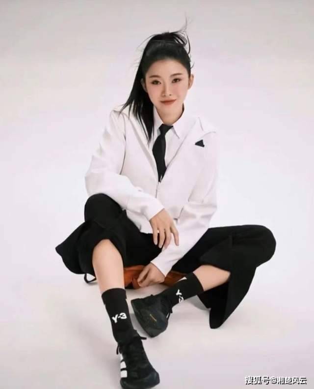 这不,又有一家时尚杂志找她拍了时尚大片。吴艳妮穿着黑白配,戴着黑色的领带,又爽又飒。