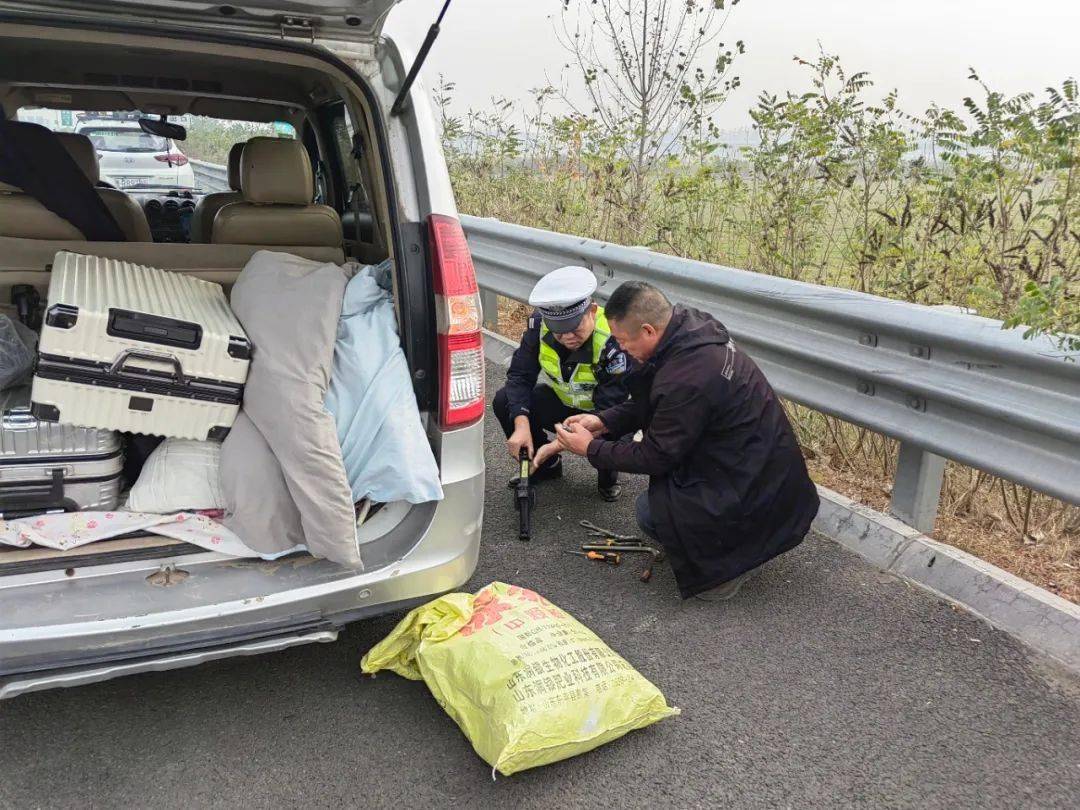经询问得知,该车辆在行驶过程中右后轮突然爆胎导致无法正常行驶,因着急赶路,此时驾驶人正心急如焚。得知情况后,民警立即取出修理工具,帮助驾驶人一起更换轮胎,十几分钟后,轮胎更换完成,民警叮嘱驾驶人使用备胎应注意的相关安全常识,驾驶人对民警的帮助再三表示感谢。