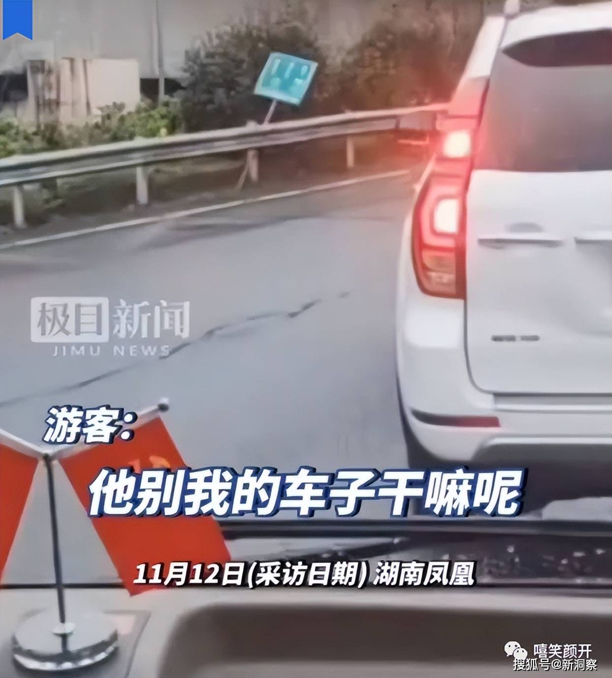 在返程时,遭遇了一件令人气愤的事情。离开凤凰古城准备上高速时,一辆白色白色SUV车辆恶意别车,不顾行车安全,不停地变道,影响大巴正常行驶。