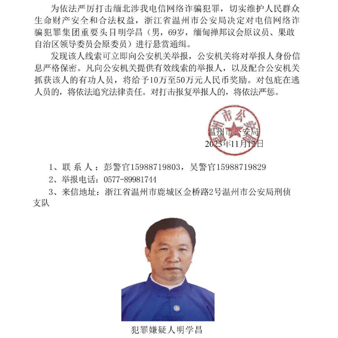 据此前报道,经浙江省温州市公安机关侦查发现,以明学昌为首的犯罪集团长期组织开设诈骗窝点,公开武装护诈,实施针对中国公民的电信网络诈骗犯罪活动,诈骗数额巨大,在公安机关严打高压态势下,仍不收敛,不收手,继续大肆组织实施违法犯罪活动,同时涉嫌故意杀人、故意伤害、非法拘禁等多种严重暴力犯罪,情节极其恶劣,后果极其严重。