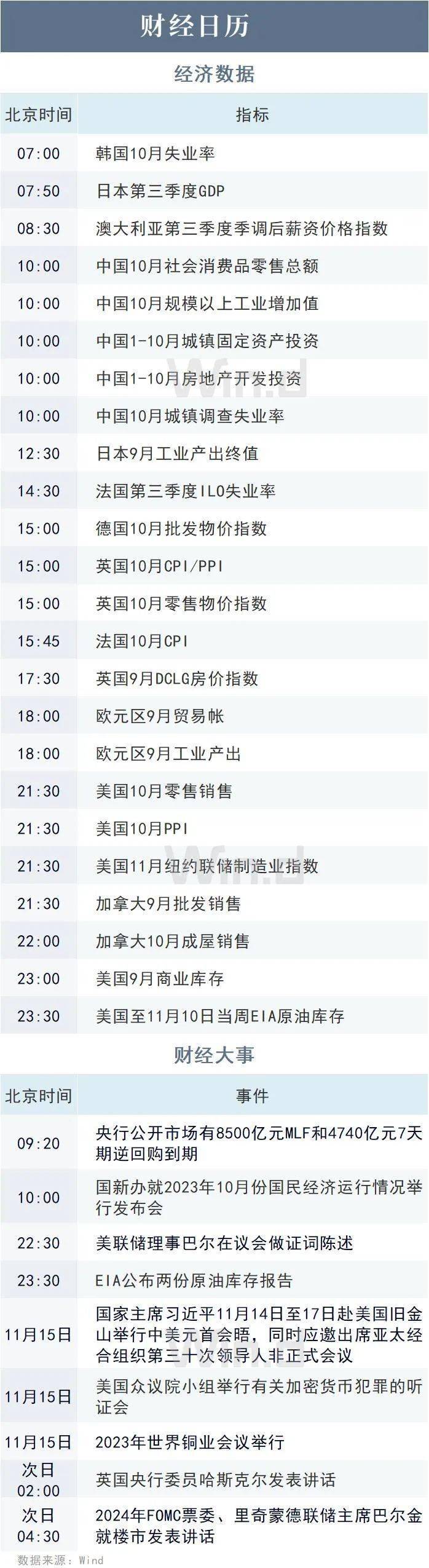 2、央行11月14日开展4240亿元7天期逆回购操作,中标利率为1.8%。Wind数据显示,当日3530亿元逆回购到期,因此单日净投放710亿元。