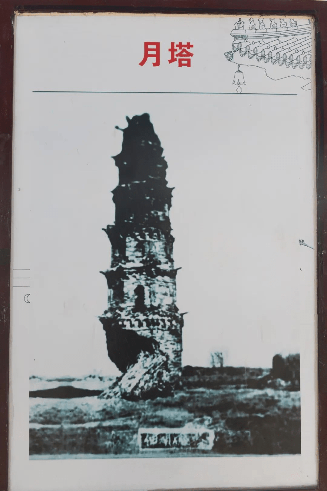 月塔是全国文物保护单位,也是当地村民眼中神奇的宝塔。宝塔的神奇之处在于“差半边”而不倒。在村里,摆放着月塔修复前的老照片。照片中的月塔,当时的塔基部分已经损坏不少,似乎“摇摇欲坠”,但依旧坚挺。