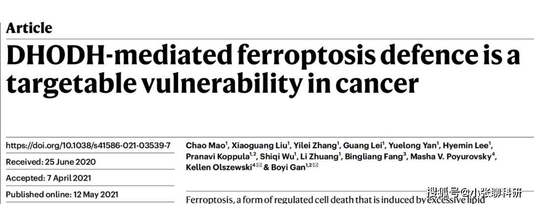 这场“battle”的源头是Nature在2021年发表的一篇铁死亡相关研究论文:DHODH-mediated ferroptosis defence is a targetable vulnerability in cancer。